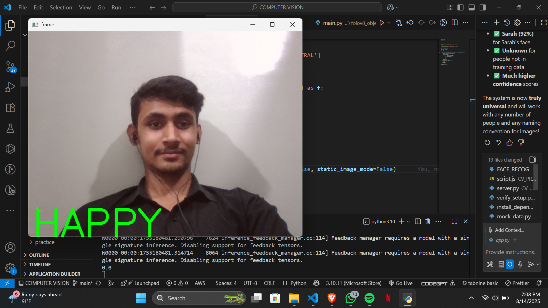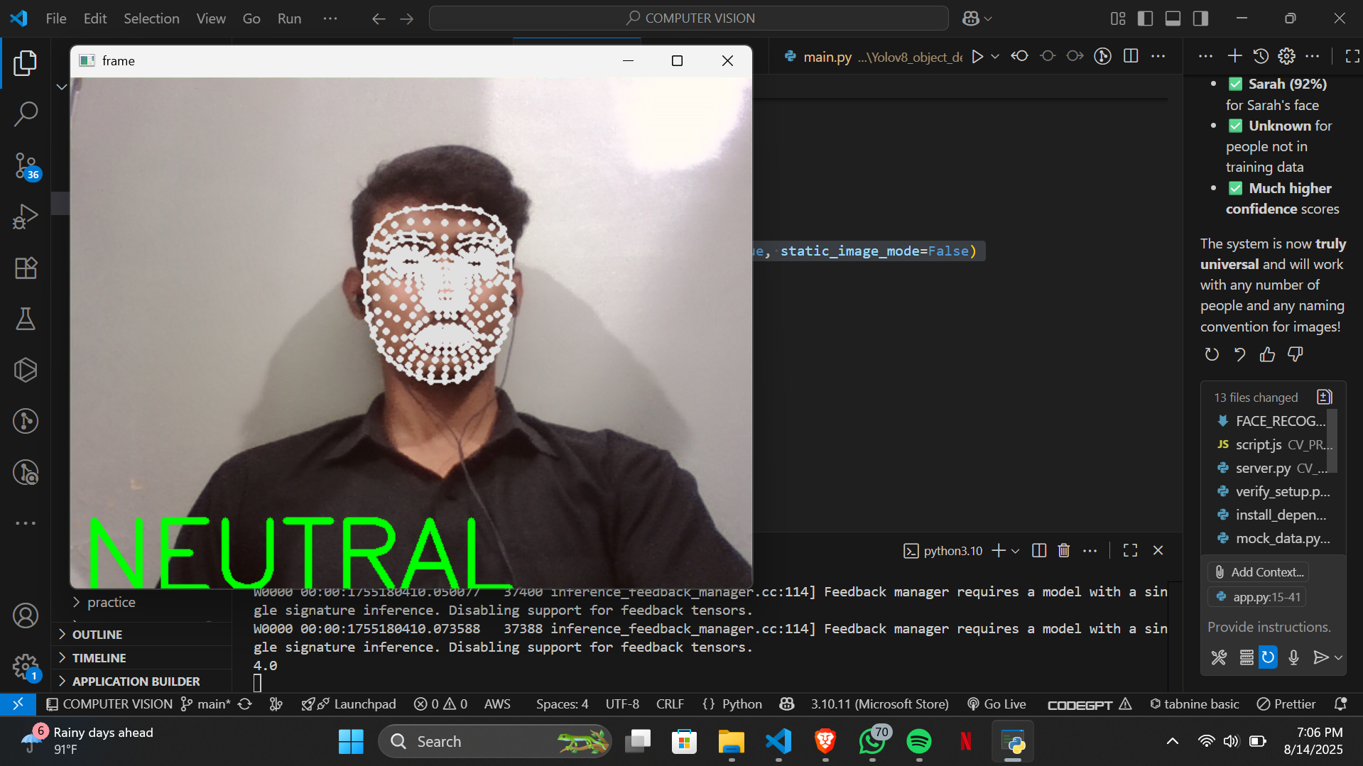 and classifies emotions using our custom-trained neural network. Despite the complexity of emotion recognition,