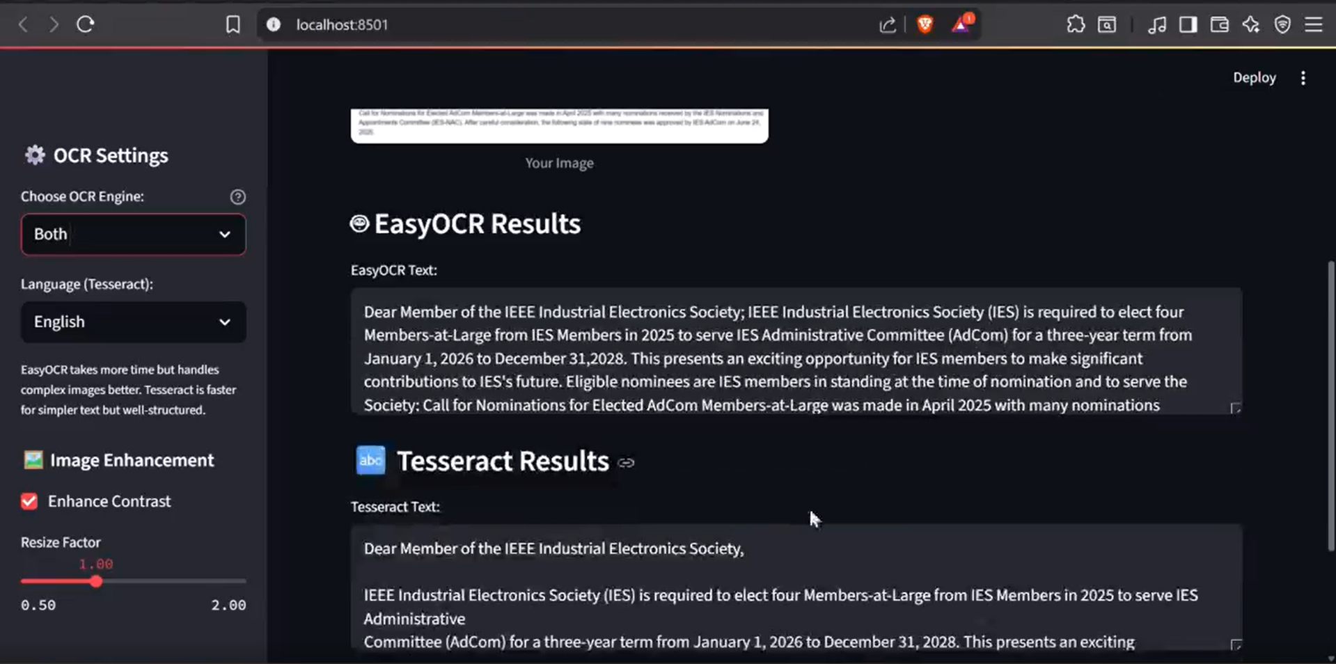 - Built using EasyOCR for high accuracy and multilingual support.