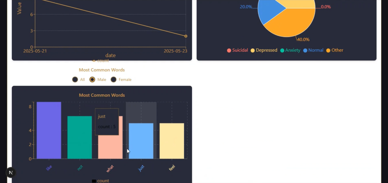 - Over 15 interactive visualizations using Recharts and Plotly.