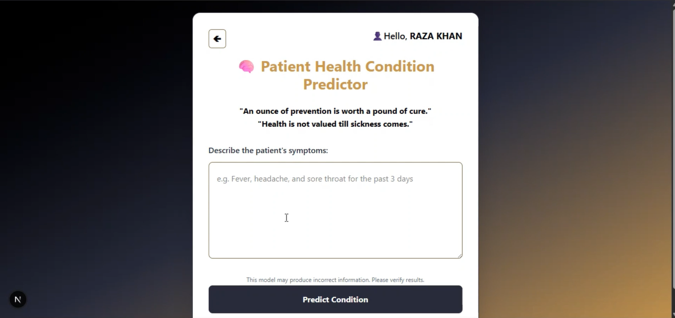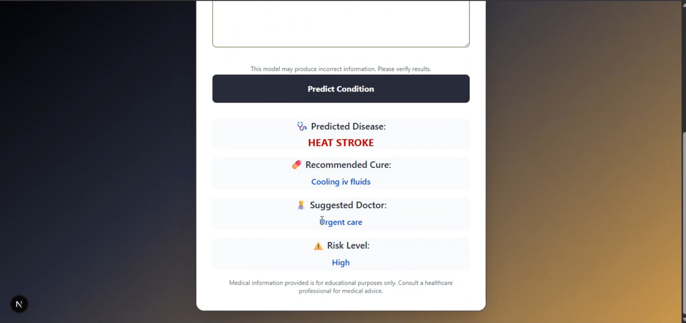 The system is designed to support early diagnosis and guide users toward appropriate medical action. It features a user-friendly interface, real-time response handling, and secure data processing. This makes it especially useful for general awareness, self-assessment, or as a support tool for digital health platforms.