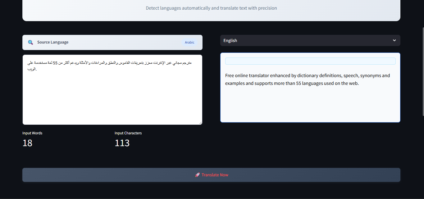 The project showcases real-time language detection and translation capabilities, making it a valuable tool for multilingual communication. It features a clean, intuitive interface with translation history tracking and clipboard functionality, enhancing user experience and accessibility.